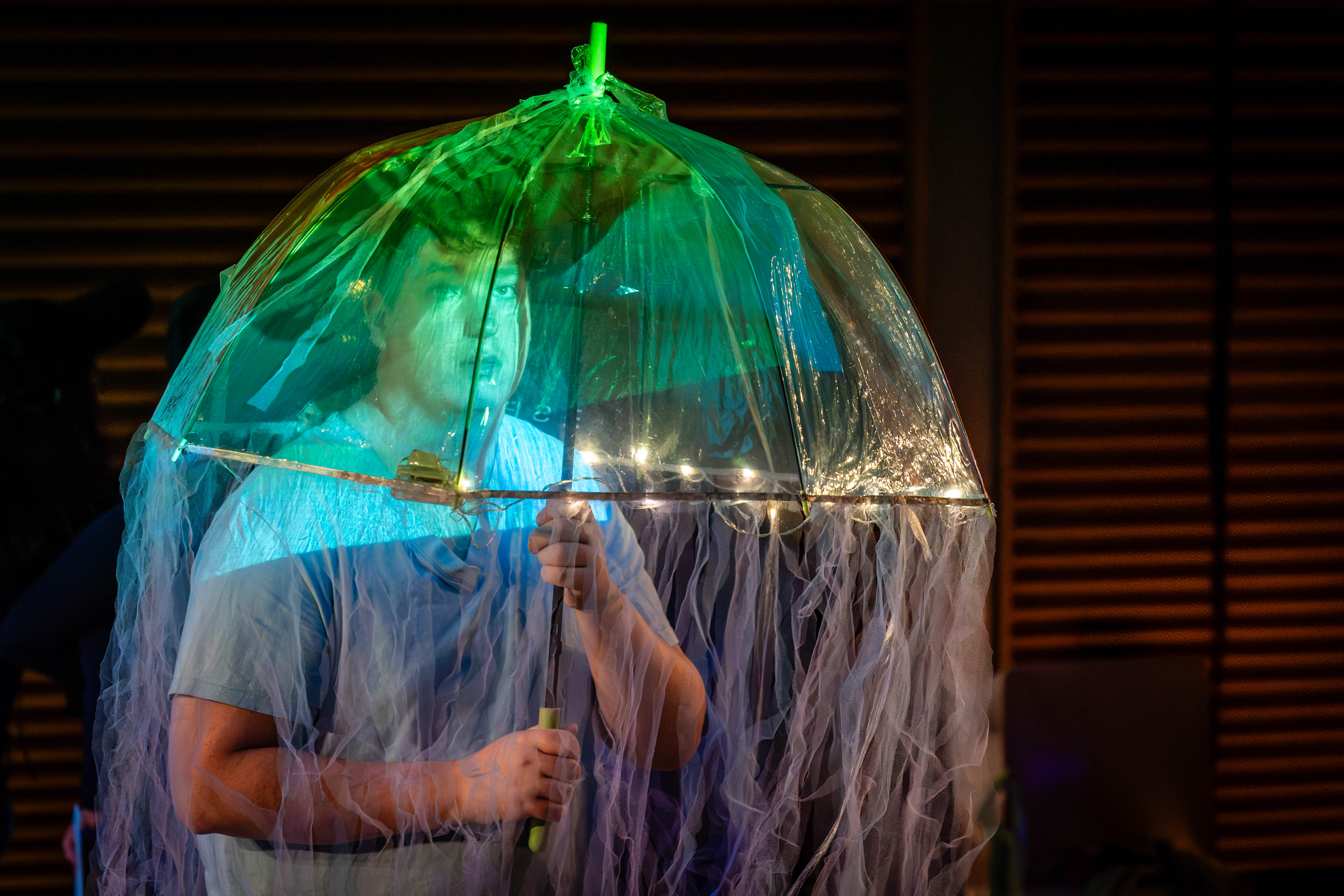 Ein Flip-Flop schwimmt vorbei - eine herrenlose Badehose - ein Taucher sogar - und dann Fische! Krake, Laternenfisch. Qualle und Co. sind unterwegs.